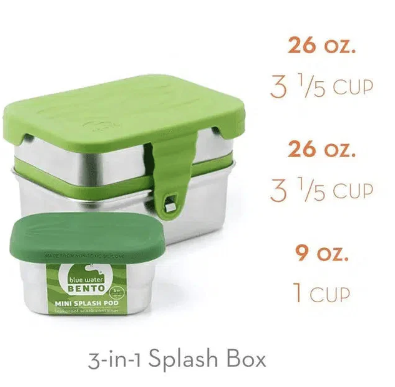 The 3 In 1 Splash Box from ECO lunchbox is a 100% high-quality, food-grade stainless steel container, with food grade silicone lids.