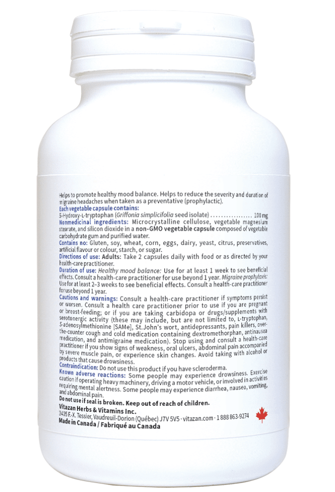 5-HTP 100mg from Vitazan helps to promote healthy mood balance. Vitazan 5-HTP 100mg helps to reduce the severity and duration of migraine headaches when taken as a preventative (prophylactic).