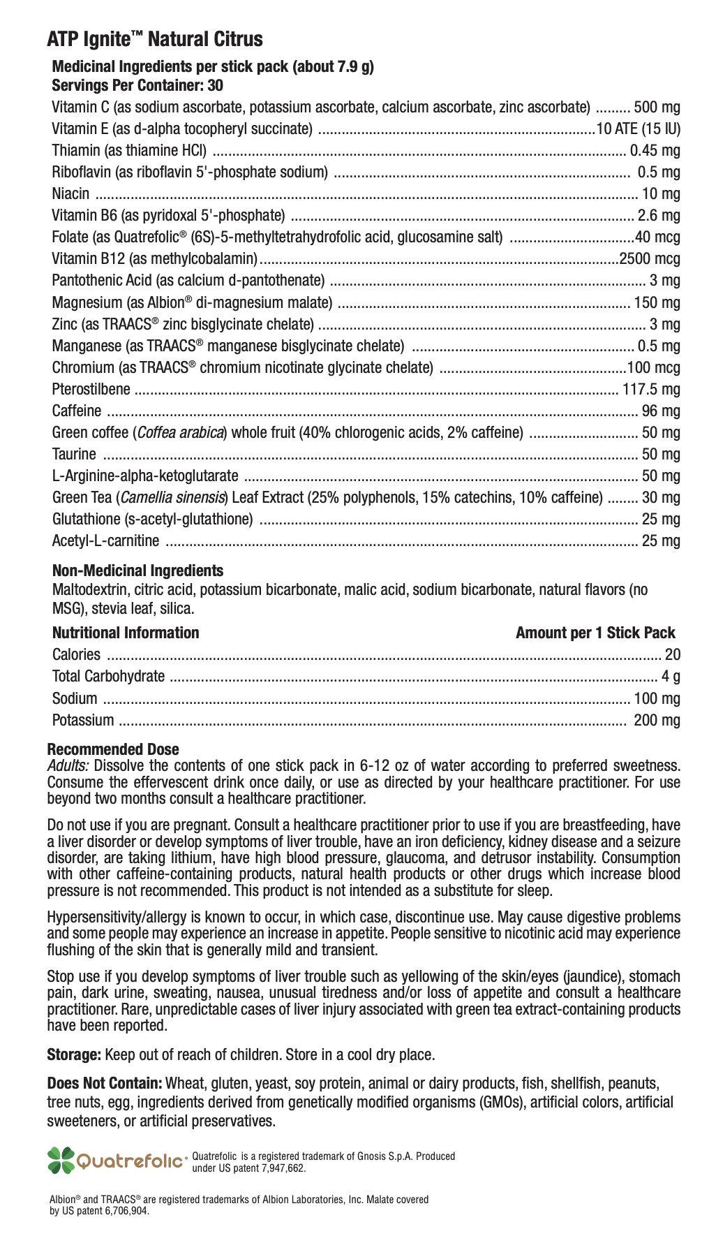 ATP Ignite from Xymogen helps to relieve fatigue, to promote endurance, and to enhance motor and cognitive performance Xymogen ATP Ignite helps fight free radicals with antioxidant nutrients *contains caffeine