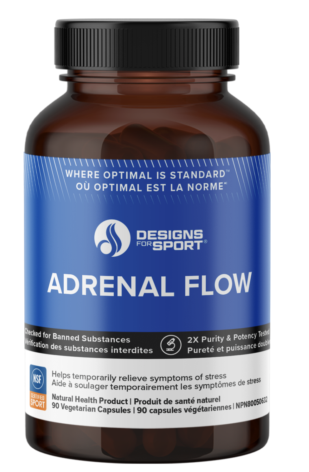 Adrenal Flow from Designs For Sport is a combination of standardized adaptogenic herbs and nutrients which are known to contribute to supporting the adrenal glands. Designs For Sport Adrenal Flow may help temporarily relieve symptoms of stress, improve physical performance after periods of exertion, and support nutrient metabolism.