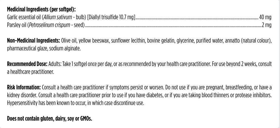 Designs For Health Allicillin softgels are enteric coated so as to lessen the strong garlic odour and repeating that sometimes occurs from supplementing garlic. Used in herbal medicine to help maintain cardiovascular health and reduce elevated blood lipid levels in adults, and to relieve the symptoms associated with upper respiratory tract infections and catarrhal conditions.