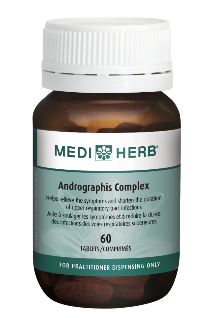 MediHerb’s Andrographis Complex is used to relieve the symptoms and shorten the duration of upper respiratory tract infections. This blend provides a unique range of phytochemicals including diterpenoid lactones (collectively referred to as andrographolide), flavonoids, alkylamides, caffeic acid derivatives (especially echinacoside and cynarin), and polyphenols.