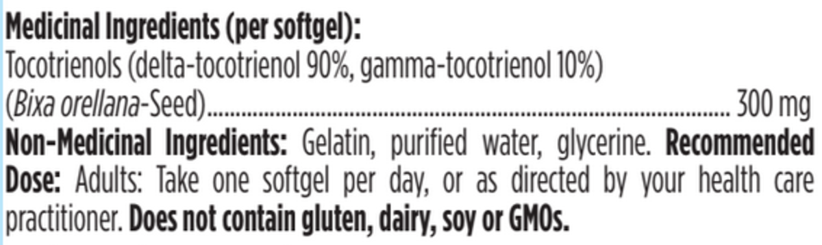 Tocotrienols are used for the health prevention of many chronic degenerative diseases since they possess powerful neuroprotective, antioxidant, and cholesterol-lowering properties. Designs For Health Annatto-E 300 contains 300 mg of both delta and gamma tocotrienols.