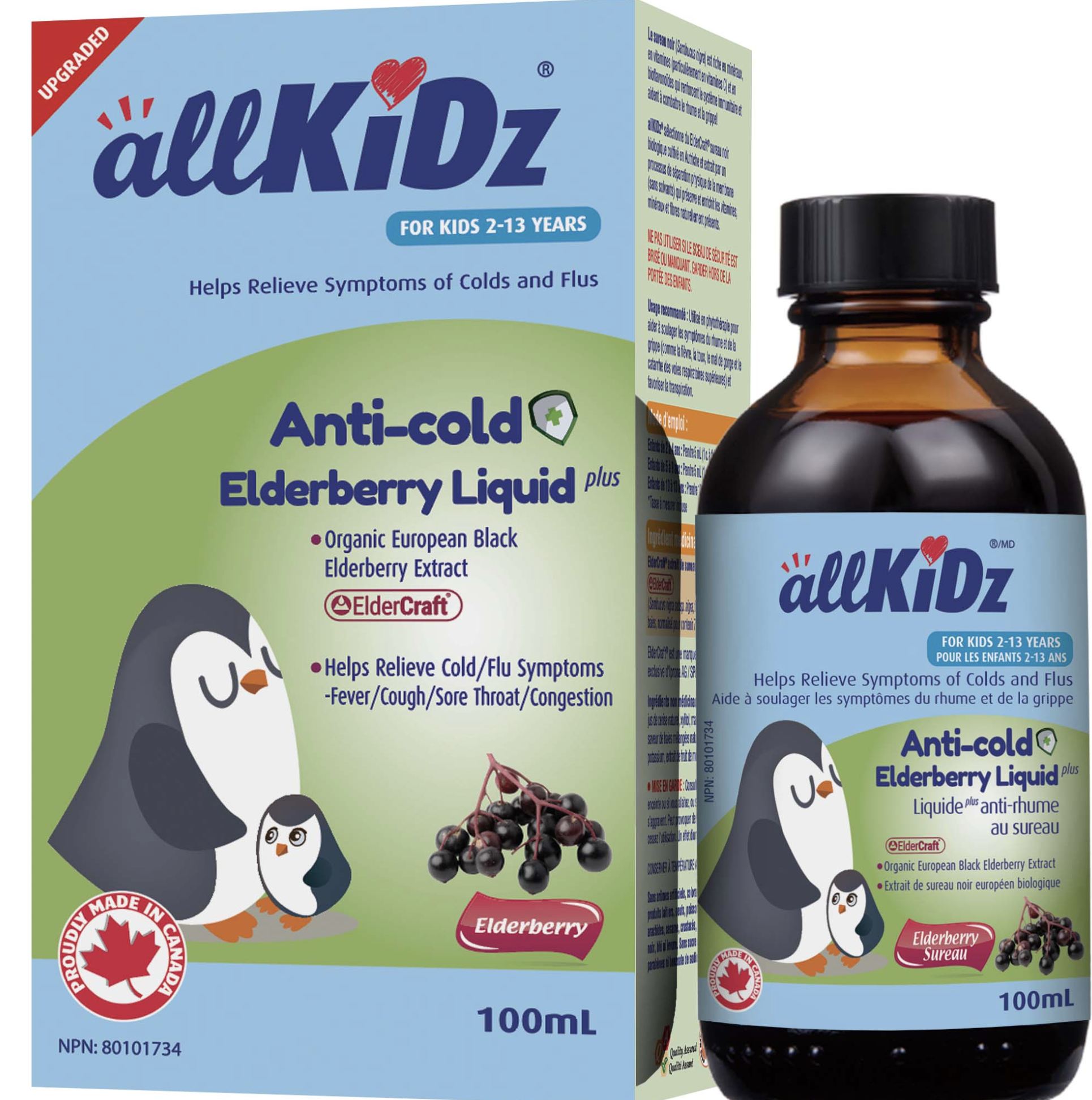 Anti-cold Elderberry Liquid fom allKiDz helps relieve Cold/Flu Symptoms.