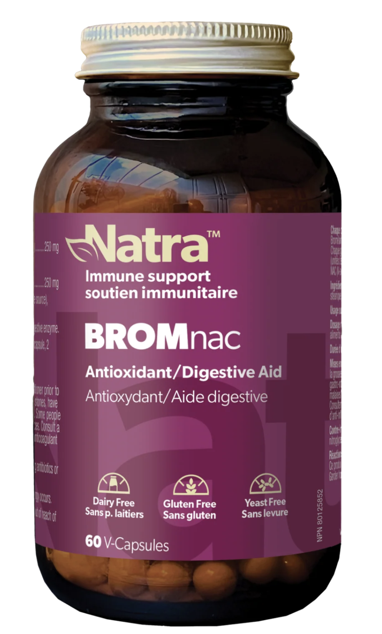 Together, these ingredients promote immune resilience, digestive comfort, and cellular regeneration. Free from dairy, gluten, and yeast, Natra BROMnac is a clean, effective choice to enhance your daily health routine.
