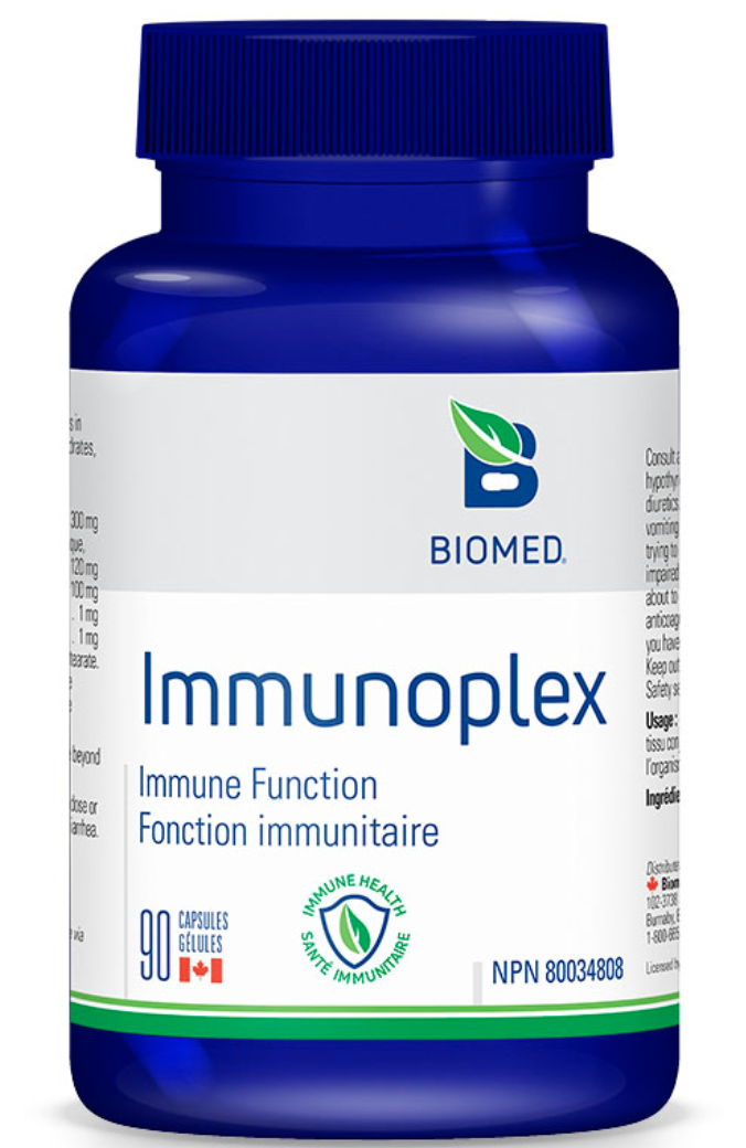 Immunoplex from Biomed provides full spectrum immune support through enhanced immune defenses against infections, boosts immune organ function (thymus, lymph, spleen, and bone marrow), increases WBC activity, and supports a reduction in the hyperactive immune response.