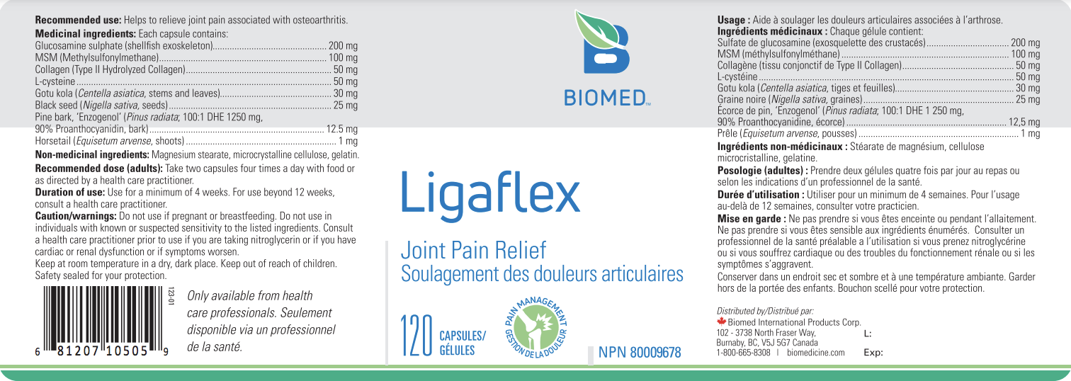 Biomed Ligaflex is specifically formulated for the musculoskeletal system. Ligaflex contains nutrients and botanicals that have traditionally been used for treatment of joints, ligaments and tendons. It is an ideal formula for healing after a musculoskeletal injury (i.e. strain, sprain) and wound healing.