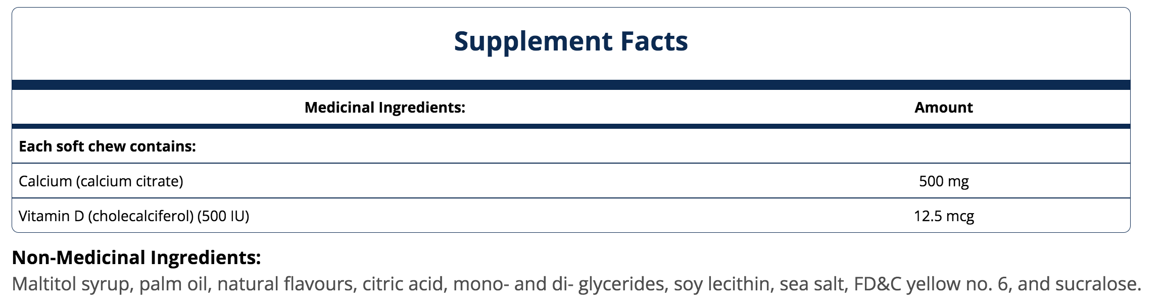 Calcium Citrate Chewy Bite (Tropical Orange) from Metagenics offers 500 mg calcium from only calcium citrate along with 500 IU of vitamin D3 to support calcium absorption.