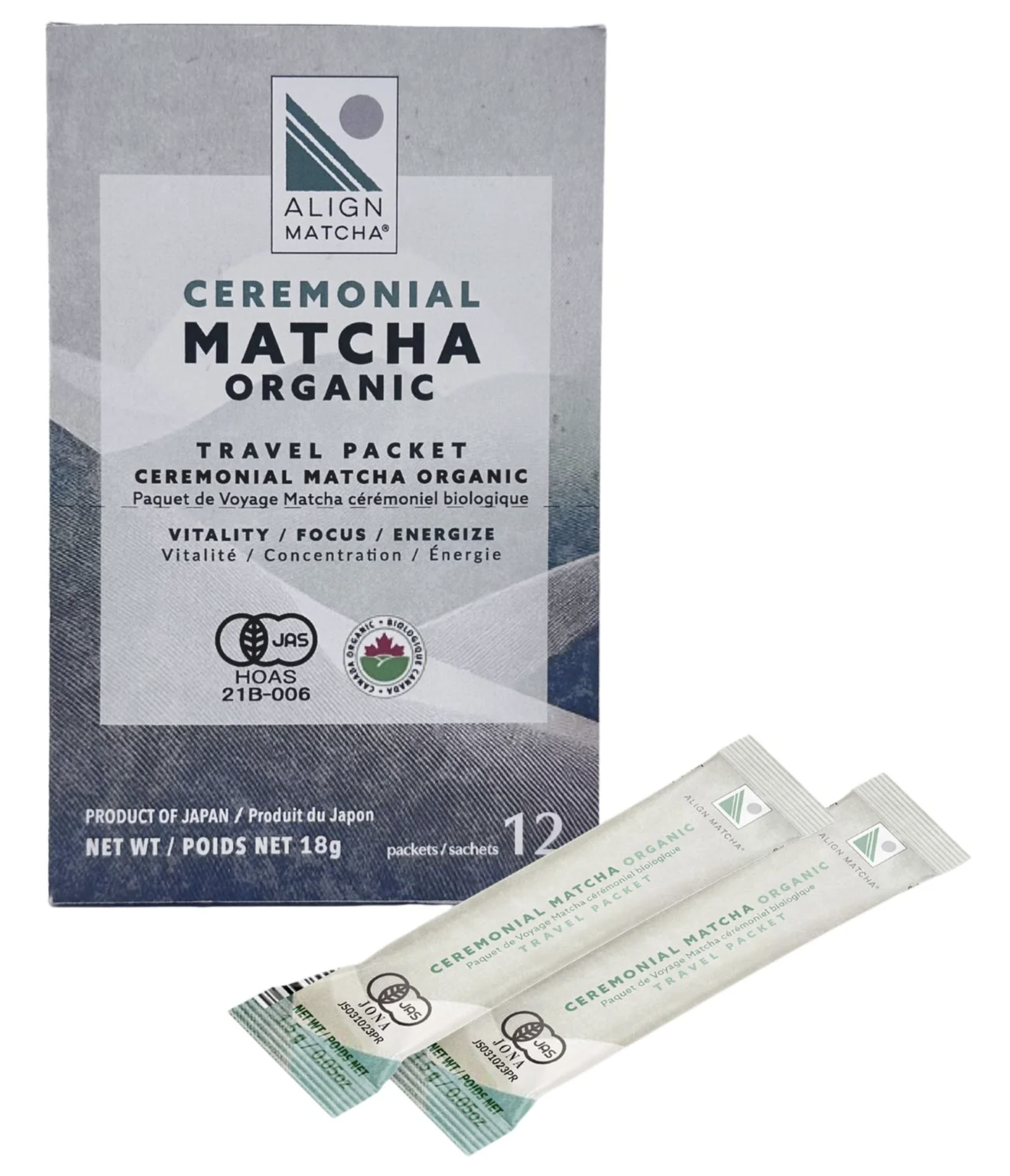 Ceremonial Matcha Organic Travel Packets from Align are perfect for travel, hikes and road trips. Align Ceremonial Matcha Organic Travel Packets offer convenient Ceremonial Matcha to go.
