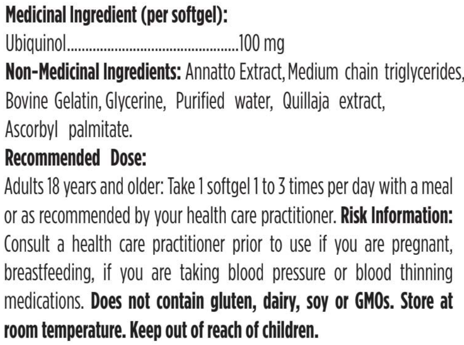 Ubiquinol is an electron-rich form of coenzyme Q10 that helps produce energy within the powerhouse of the cells in the body, called mitochondria. Ubiquinol acts as an antioxidant and helps prevent the cells from free radical damage. Because it functions in this way, CoQnol 100 is important for brain health, cardiovascular health, hypertension, cholesterol, the aging process and overall good health and immune function.