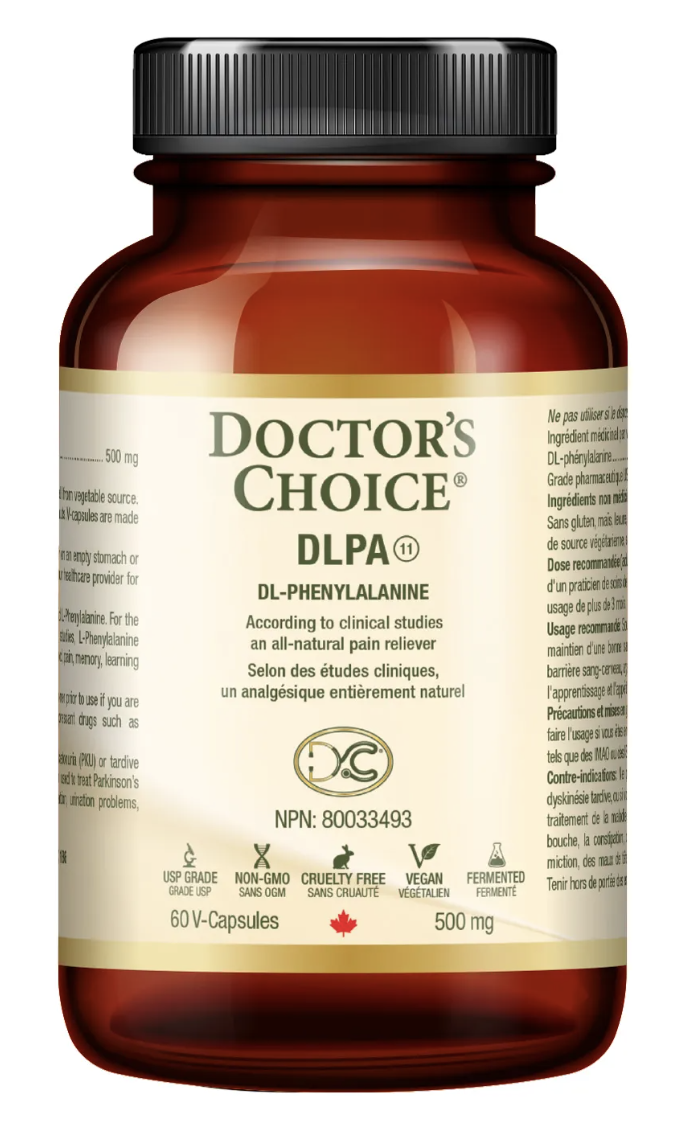 DLPA DL-Phenyalanine from Doctor’s Choice is  source of the essential amino acid L-Phenylalanine, for the maintenance of good health. L-Phenylalanine crosses the blood brain barrier, affecting mood, pain, memory,learning and appetite; according to studies DLPA DL-Phenyalanine helps to boost emotional enthusiasm and  improve workout focus