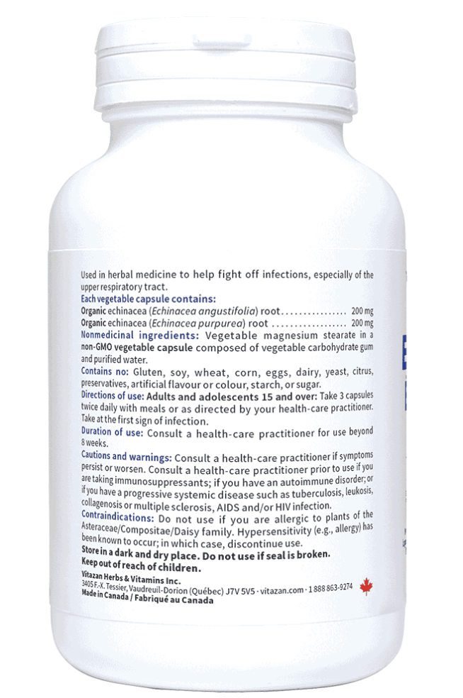 Echinacea from Vitazan is Made with Organic Echinacea. Vitazan’s Echinacea is used in herbal medicine to help fight off infections, especially of the upper respiratory tract.