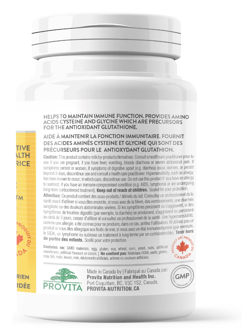 Endothione from Provita provides precursor amino acids for Glutathione, enabling muscle protein synthesis, and helping to support immunity and anti-aging.