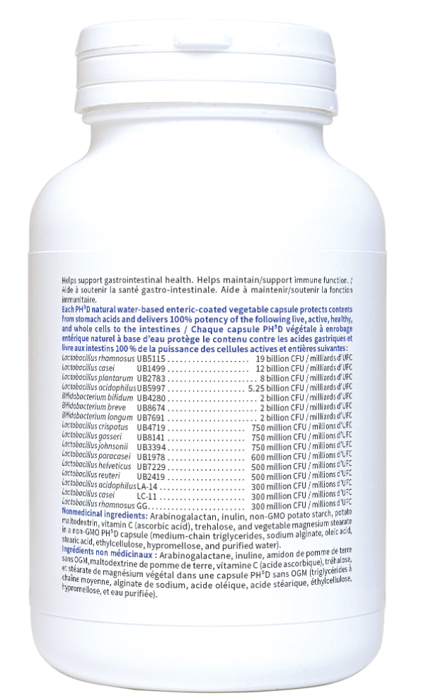Other ingredients: Arabinogalactan, inulin, non-GMO potato starch, potato maltodextrin, vitamin C (ascorbic acid), trehalose, and vegetable magnesium stearate in a non-GMO PH⁵D capsule (medium-chain triglycerides, sodium alginate, oleic acid, stearic acid, ethylcellulose, hypromellose, and purified water).