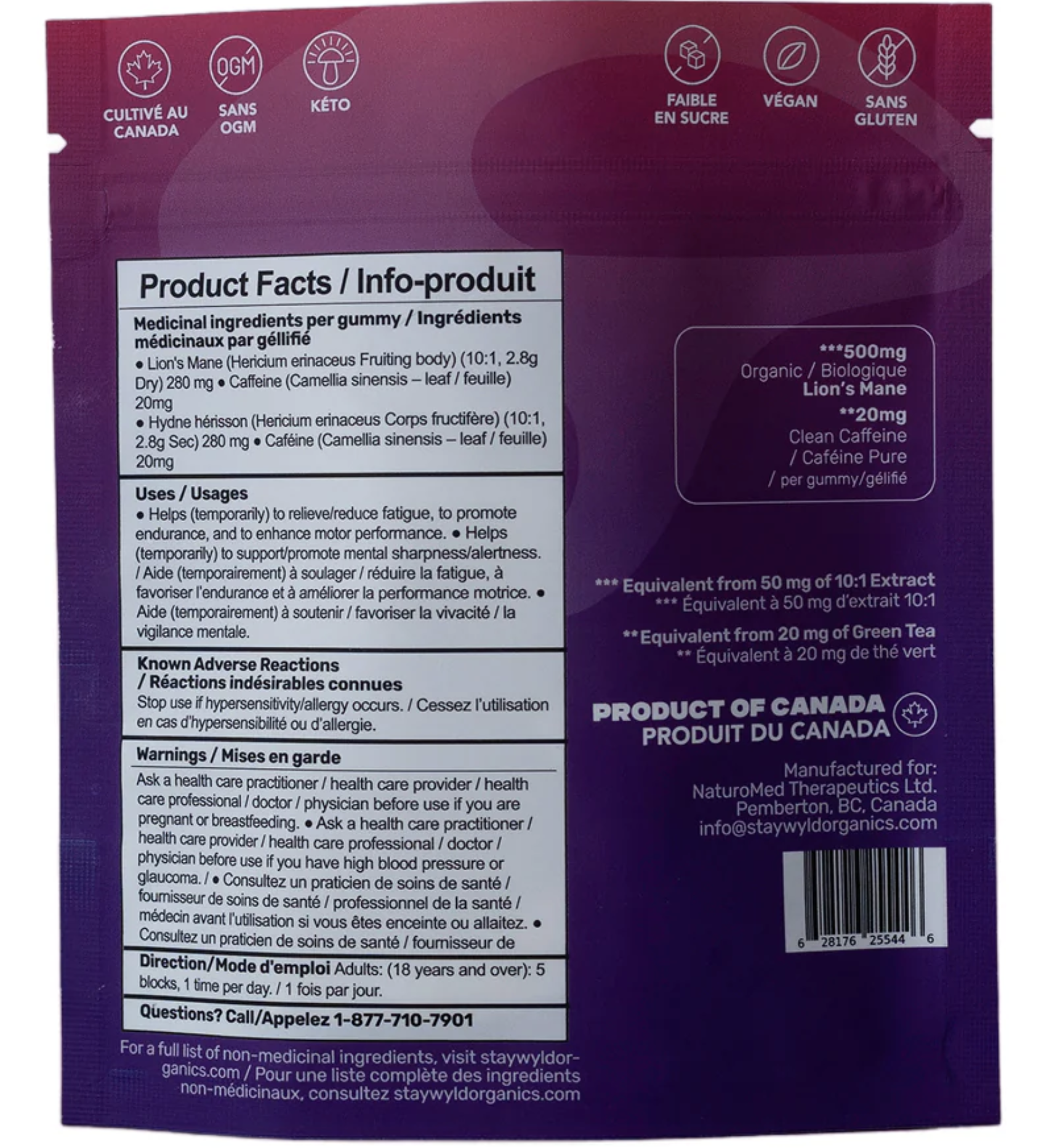 Each gummy provides 500 mg of organic Lion’s Mane for cognitive support and 20 mg of clean caffeine from Green Tea for smooth, jitter-free energy. Free from artificial colors and made with high-quality organic ingredients, these gummies are as tasty as they are effective.