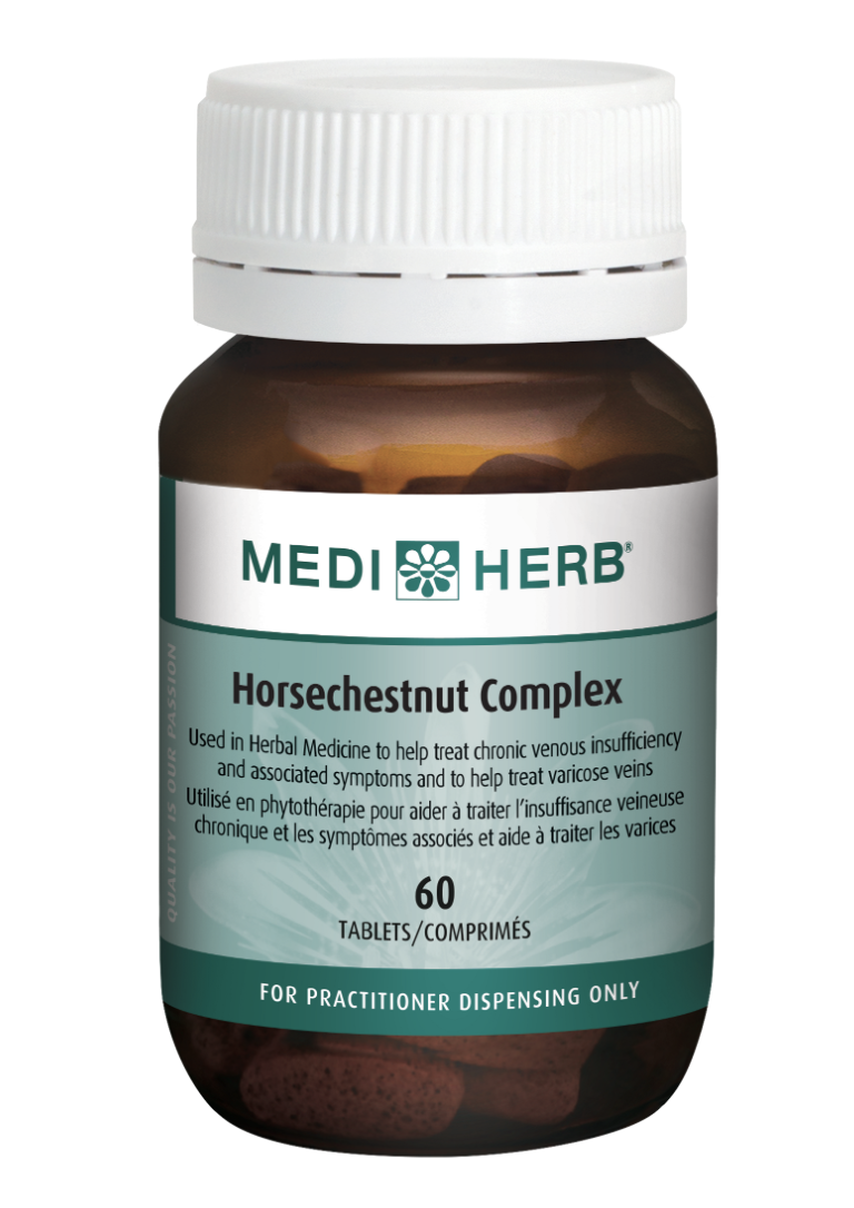 MediHerb’s Horsechestnut Complex can be used to help treat chronic venous insufficiency and associated symptoms such as from haemorrhoids and varicose veins.