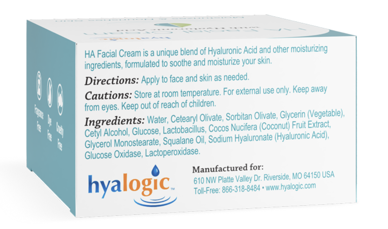 Hyalogic ultra-hydrating HA Facial Cream is a unique blend of Hyaluronic Acid and other moisturizing ingredients, formulated to soothe and moisturize your skin. Feel that silky smooth, visibly hydrated skin appearance.
