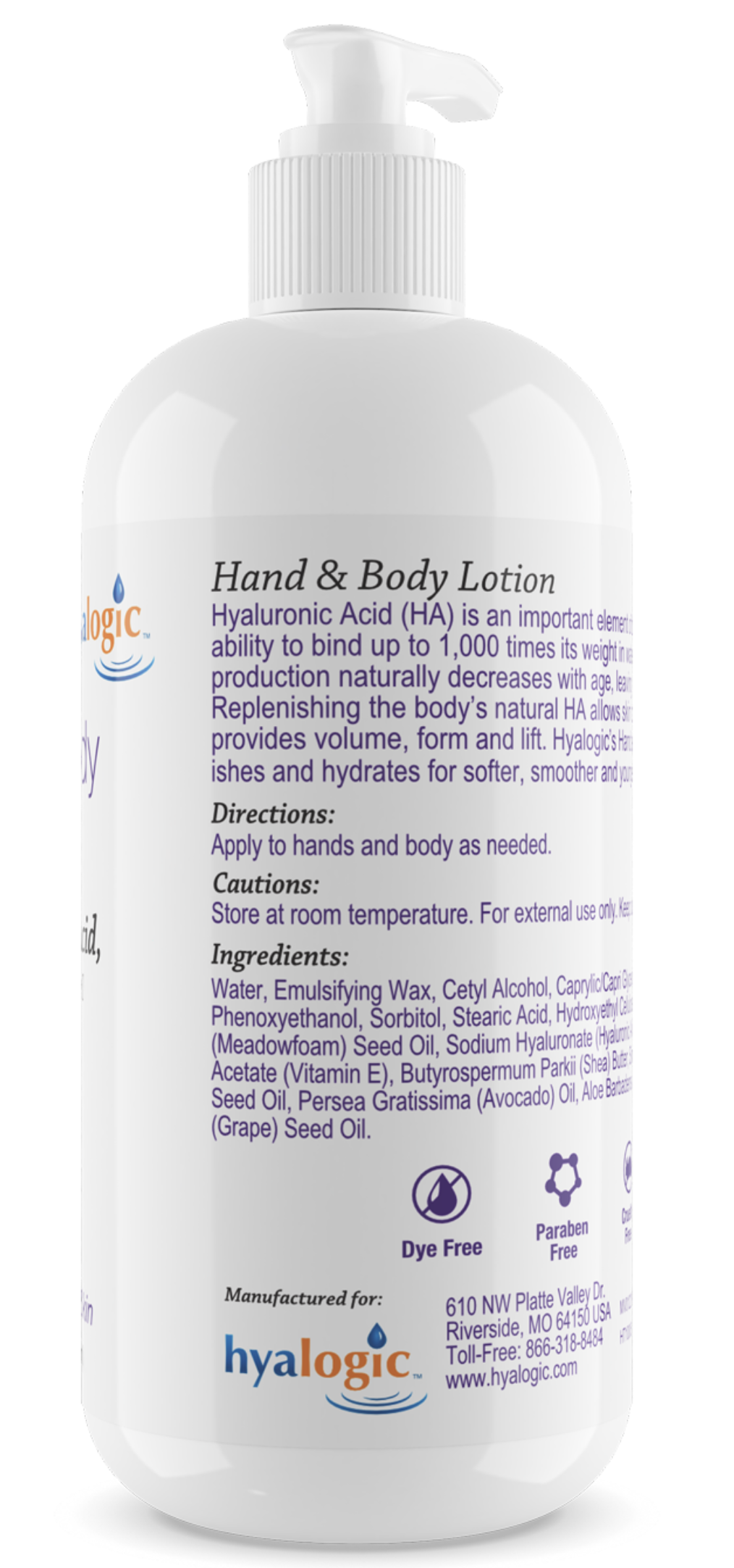 Hyalogic Hand & Body Lotion is a silky, luxurious lotion formulated with a high concentration of Hyaluronic Acid to deeply hydrate and nourish dry skin. Designed to promote a softer, smoother, and more youthful appearance, this non-oily, fragrance-free, and paraben-free formula supports healthy skin texture and tone.