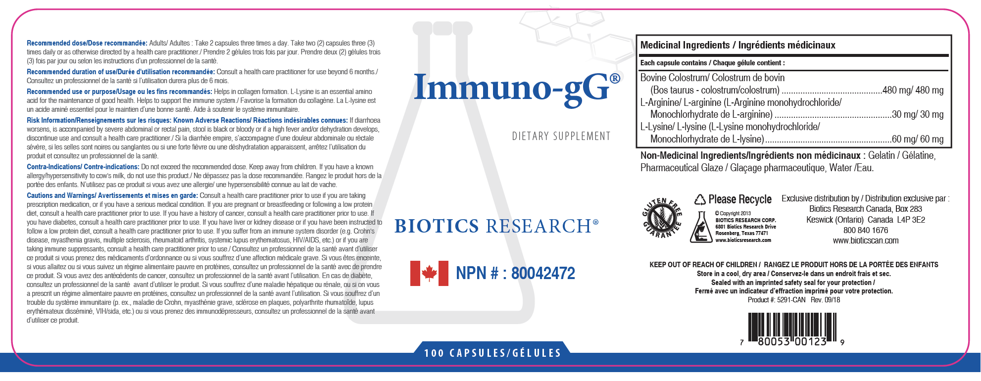 Immuno-gG from Biotic Research supplies a supplemental source of immunoglobulin G from Bovine Colostrum. It is fortified with the amino acids L-Lysine and L-Arginine. As a source of colostrum, it provides support for healthy immune function. Colostrum supplies proteins, carbohydrates, fats, vitamins, minerals, and proteins (antibodies) that support the immune system. The antibody levels in colostrums can be 100 times higher than that present in regular cow’s milk. Bovine colostrum may also be beneficial for boosting the immune system, healing injuries, repairing nervous system damage, for improving mood, and for facilitating a sense of well being.