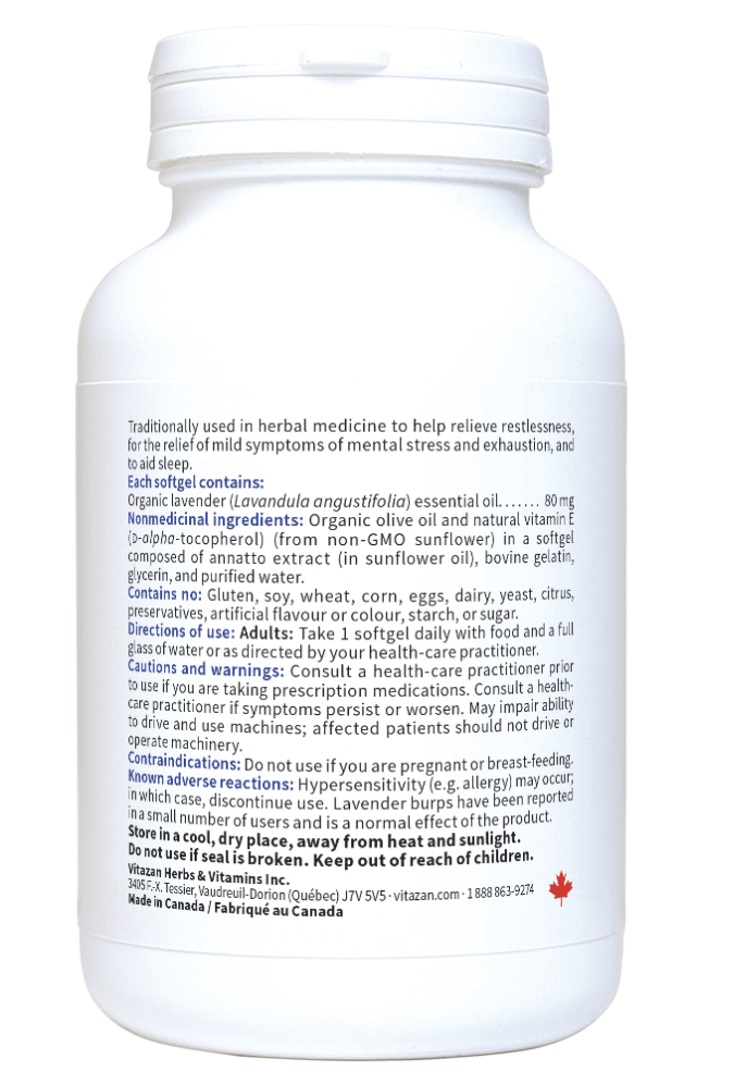 Lavender Oil from Vitazan is traditionally used in herbal medicine to help relieve restlessness, for the relief of mild symptoms of mental stress and exhaustion, and to aid sleep.