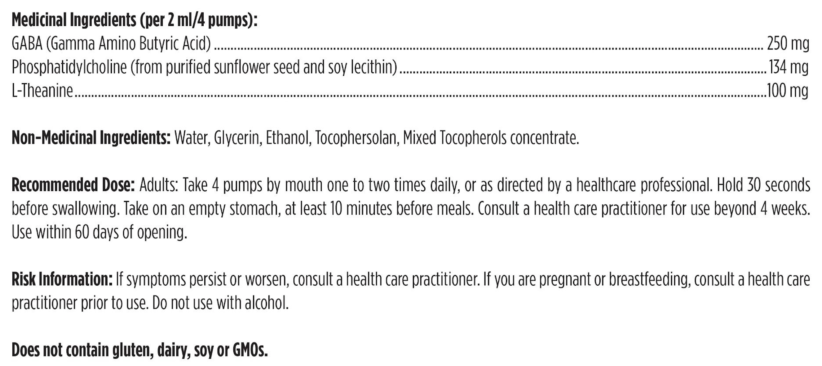 Liposomal GABA with L-Theanine features GABA (gamma-aminobutyric acid) and L-theanine, both well regarded for promoting mental and emotional calm without impairing focus and attention. Liposomes are spheres made of phospholipids—the primary building blocks of cell membranes. Owing to this structure, liposomes bond easily with cell membranes to facilitate intracellular delivery of their nutrient cargo. GABA is a naturally occurring amino acid in the brain and is a major inhibitory neurotransmitter in the central nervous system. Being an inhibitory neurotransmitter, GABA blocks nerve impulses, slowing down the activity of nerve cells and preventing them from over-firing. GABA serves as a critical calming agent for the body, helping to combat stress.