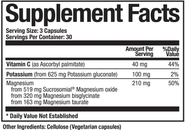 Mag3Ultra is a premium triple-form magnesium supplement enhanced with potassium that supports countless metabolic processes such as heart, bone, and muscle function, as well as sleep quality. Central to Mag3Ultra’s innovation is Sucrosomial Magnesium, a highly advanced form encased in a sucrosome (lipid) matrix for superior uptake. In comparative tests, Sucrosomial Magnesium achieved 20% higher bioavailability than Magnesium Citrate, promoting faster absorption without the gastrointestinal discomfort common in other magnesium supplements.