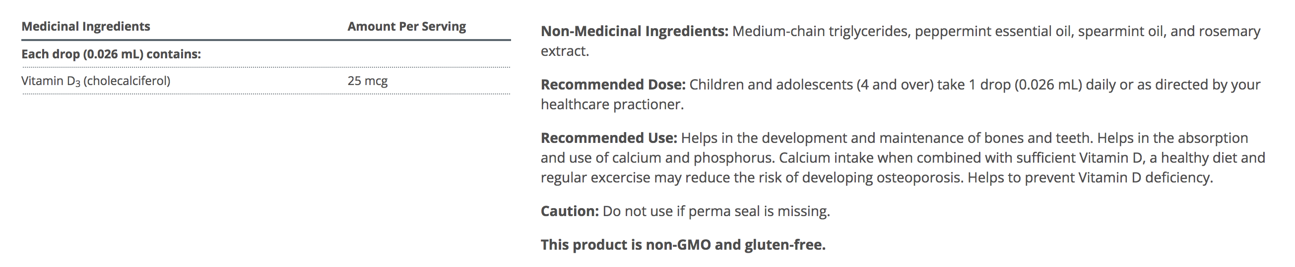 Recommended Dose: Children and adolescents (4 and over) take 1 drop (0.026 mL) daily or as directed by your healthcare practioner.