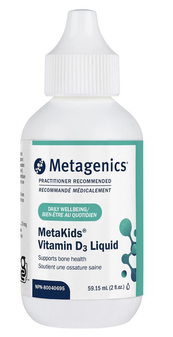 MetaKids D3 Liquid from Metagenics supports bone and immune health.