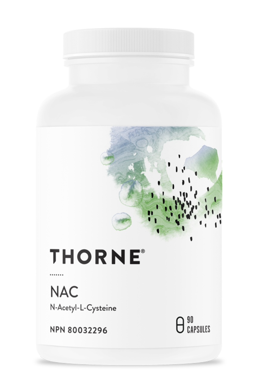 Thorne NAC (N-Acetylcysteine) is an amino acid that supports respiratory health and immune function, in addition to increasing glutathione levels, which supports detoxification and resists oxidative stress.