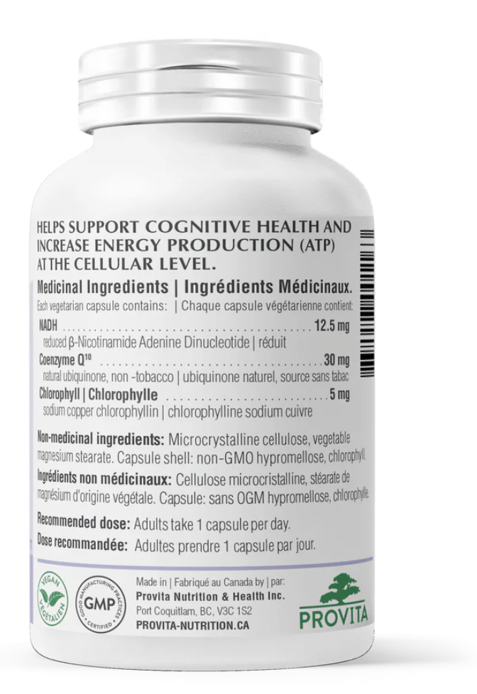 NADH+ Forte from Provita helps increase energy at the cellular level by increasing the production of ATP, helping mental clarity and alertness while improving memory.