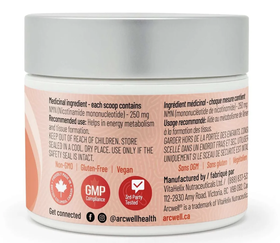 NMN from Arcwell is a source of Vitamin B3, a factor in the maintenance of good health. Arcwell’s NMN supports cellular health and energy metabolism, helps boost NAD+ levels and promotes healthy aging.