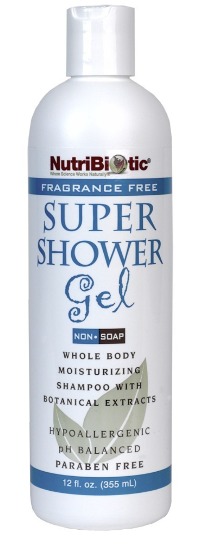 NutriBiotic  Super Shower Gel (Fragrance Free) is a fragrance free, moisturizing, non-soap, vegan formula designed for your entire body, including your hair. Gentle, deep cleansing action leaves no pore-clogging residue. Plant moisturizers help maintain your skin’s moisture mantle and pH balance. Ideal for all types of skin and hair.