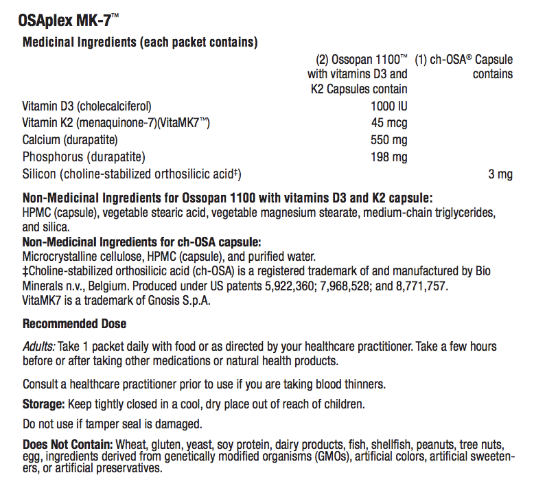 OSAplex MK-7 from Xymogen helps in the absorption and use of calcium and phosphorus and assists in helping to prevent vitamin D deficiency.