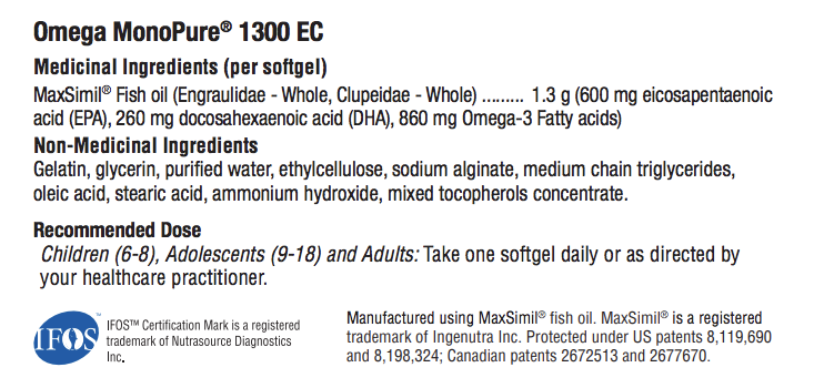 Omega MonoPure 1300 EC from Xymogen is an excellant source of omega-3 fatty acids, eicosapentaenoic acid (EPA) and docosahexaenoic acid (DHA) for the maintenance of good health.