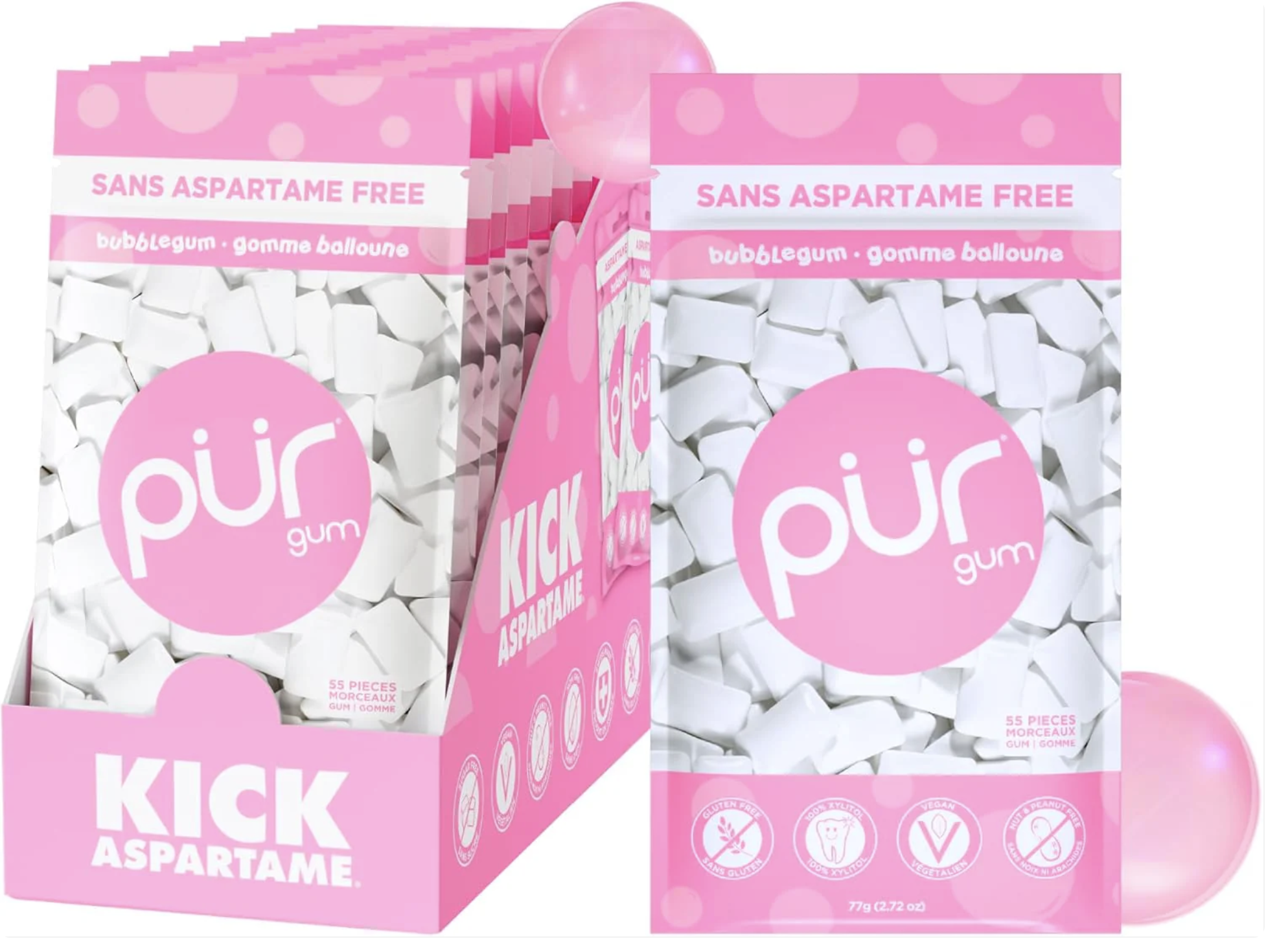 PUR Gum Bag Bubblegum flavored gum offers a naturally sweet twist on the classic flavor we grew up loving!