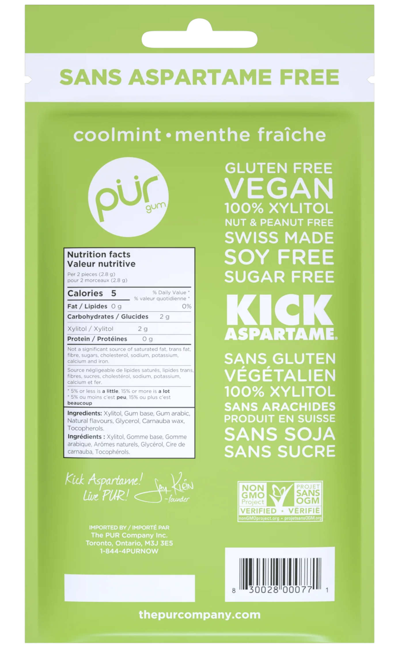 As part of our commitment to clean, inclusive products, PUR gum is also vegan, non-GMO, gluten-free, soy-free, nut- and peanut-free, and proudly Swiss made using high-quality European-sourced ingredients. Since 2010, PUR has been dedicated to helping people make simple substitutions that promote a healthier lifestyle without compromising taste or quality. Also available in a variety of flavours like Pomegranate Mint, Peppermint, Spearmint, Wintergreen, and Chocolate Mint—there’s a PUR gum for every palate!