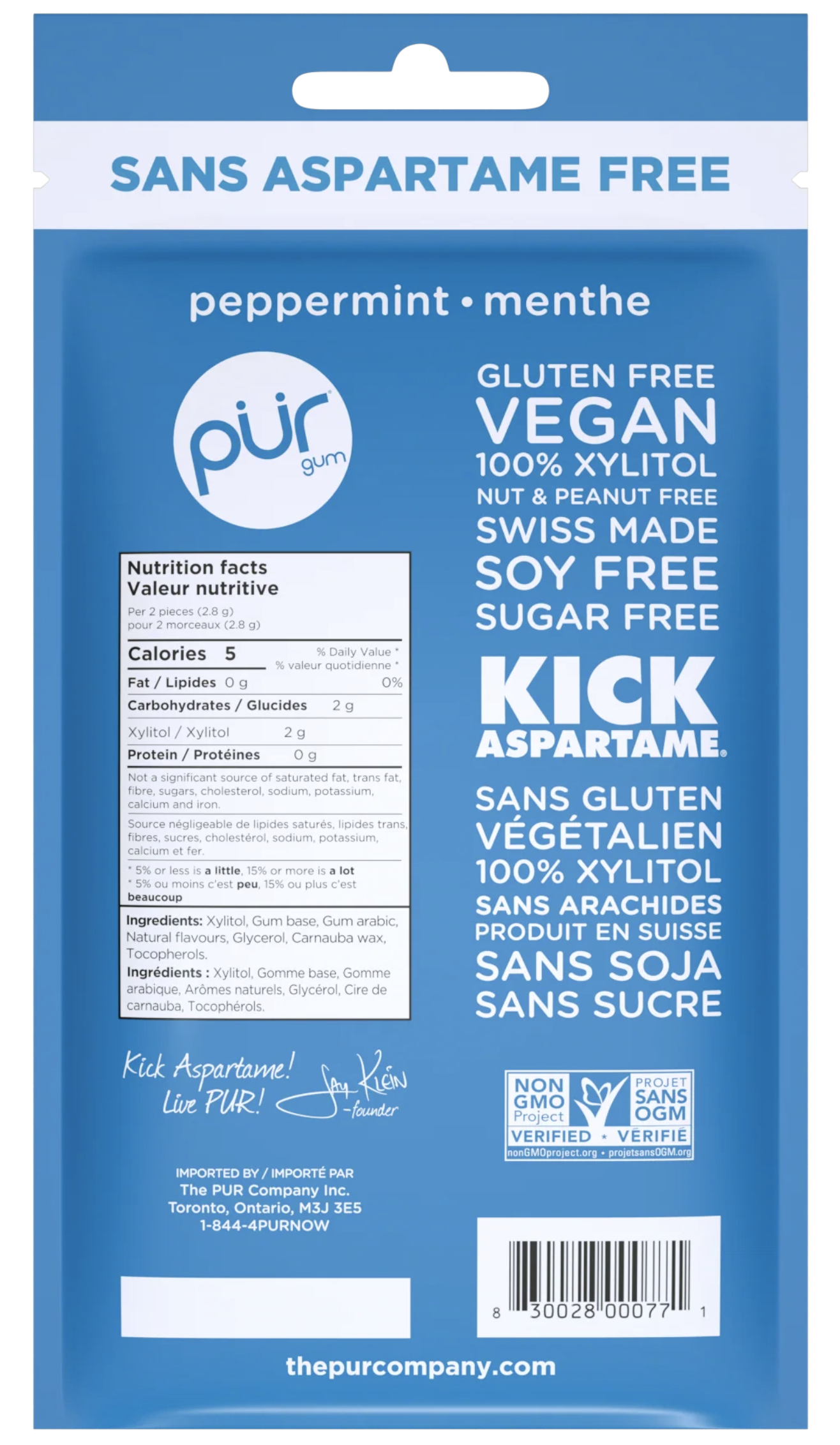 As part of our commitment to clean, inclusive products, PUR gum is also vegan, non-GMO, gluten-free, soy-free, nut- and peanut-free, and proudly Swiss made using high-quality European-sourced ingredients. Since 2010, PUR has been dedicated to helping people make simple substitutions that promote a healthier lifestyle without compromising taste or quality. Also available in a variety of flavours like Pomegranate Mint, Peppermint, Spearmint, Wintergreen, and Chocolate Mint—there’s a PUR gum for every palate!
