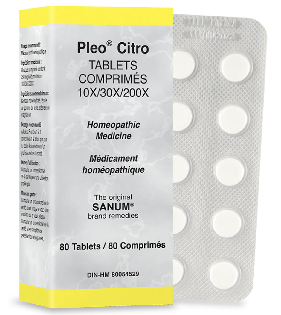 Pleo Citro is a homeopathic remedy that is used to increase cellular metabolism, reduces blood viscosity and decreases lactic acid production and fluid retention.