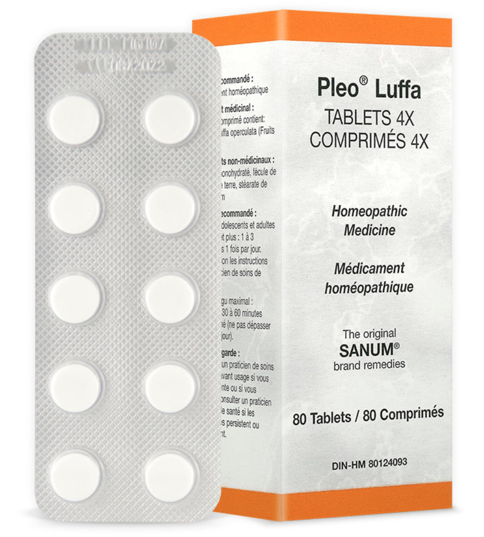 Pleo Luffa from Sanum is used for allergies and conditions associated with the upper respiratory tract such as hay fever and allergic rhinitis. It decreases congestion and inflammation in the sinuses, nasal passages, runny nose, tonsils, lymph nodes, bronchi, and lungs.