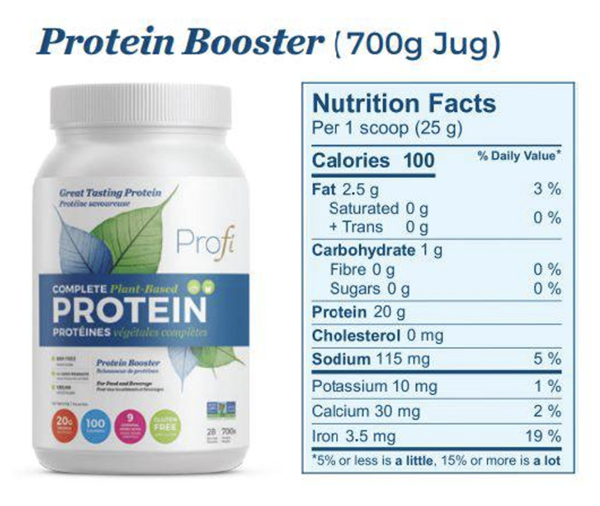 Profi Complete Protein Booster, with a pleasant, almost neutral taste provides a convenient boost of protein when added to a variety of foods and beverages including soups, sauces and so much more. Profi Complete Plant Based  Protein Booster is an ideal way to start your day with a healthy breakfast shake or to enjoy throughout the day in your favourite meal or fruit smoothie. Profi Protein Booster provides 20g of protein per serving.