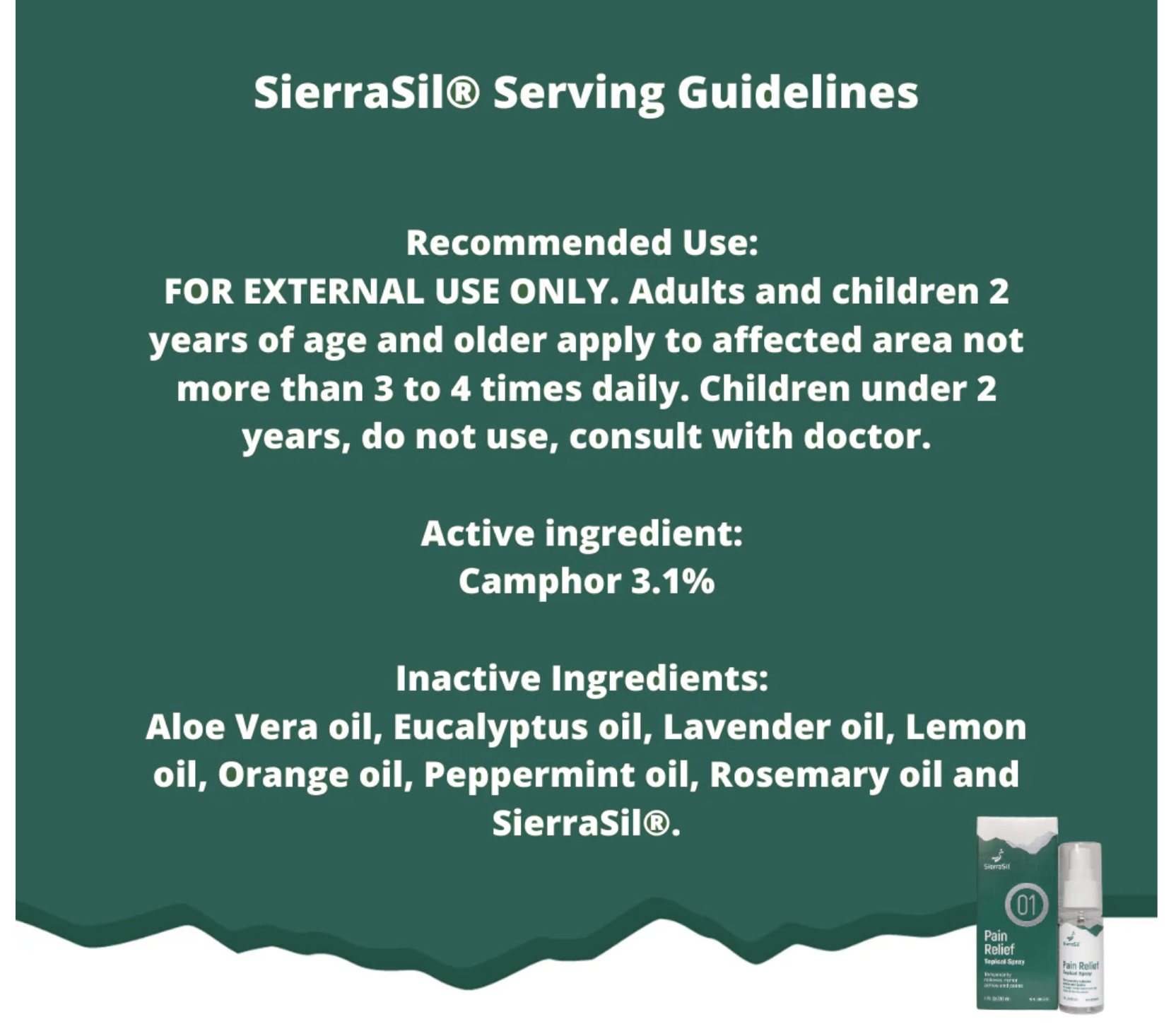 SierraSil Pain Relief Topical Spray offers a natural alternative for those who suffer from minor aches and pains of muscles and joints associated with simple backache, arthritis, strains, bruises and sprains.