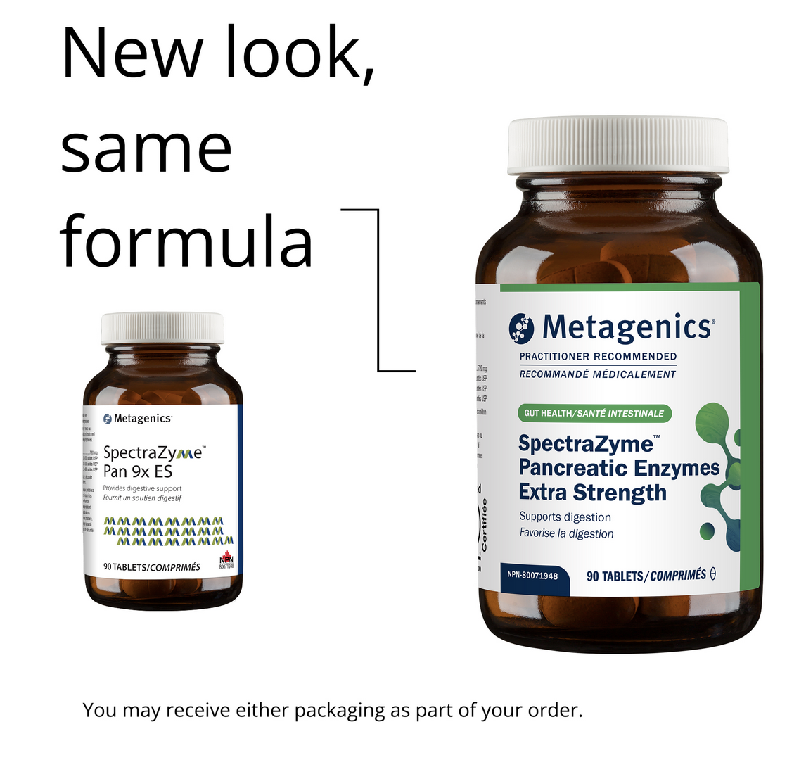 SpectraZyme Pancreatic Enzymes Extra Strength by Metagenics is a comprehensive enzyme complex that provides support for digestive function. The porcine pancreatic concentrate is processed under special conditions so that the delicate enzyme constituents remain intact.