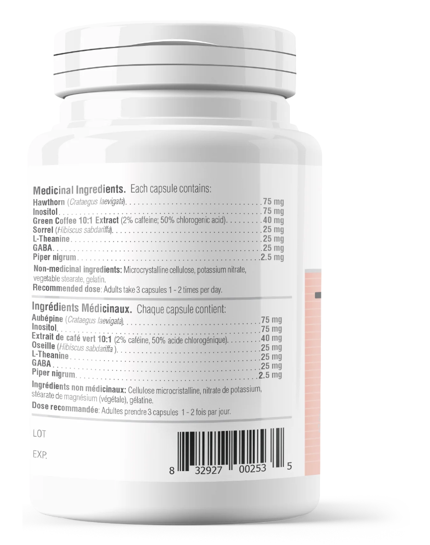 Provita’s Tensopril BP contains a combination of Hawthorn which is a well-established traditional cardio-tonic, Hibiscus sabdariffa that can inhibit angiotensin, L-Theanine, Inositol and GABA that have a relaxing effect on the nervous system with positive impact on heartbeat and blood pressure, Chlorogenic acid from green coffee beans which has been proven clinically to lower blood pressure , along with added nitrates which are converted into nitric oxide, known for relaxing the blood vessels.