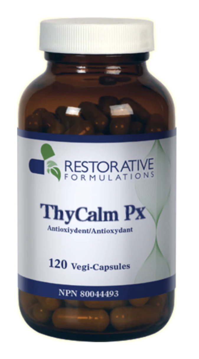 ThyCalm Px is designed to help support thyroid gland function, and the neuro-thyroid relationship. ThyroCalm Px is a specific blend of botanicals high in polyphenols, which support many aspects of thyroid health.