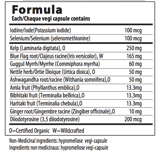 ThyroCare provides essential co-factors for thyroid hormone production, including vitamins D3, B12 methylcobalamin, selenium, and iodide. It also contains a unique blend of thyroid supporting herbs including guggul myrrh and organic herbs blue flag, triphala, ashwagandha root, nettle, kelp, and ginger.