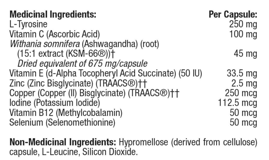 • Iodine, tyrosine, and ashwagandha support a healthy level of T4