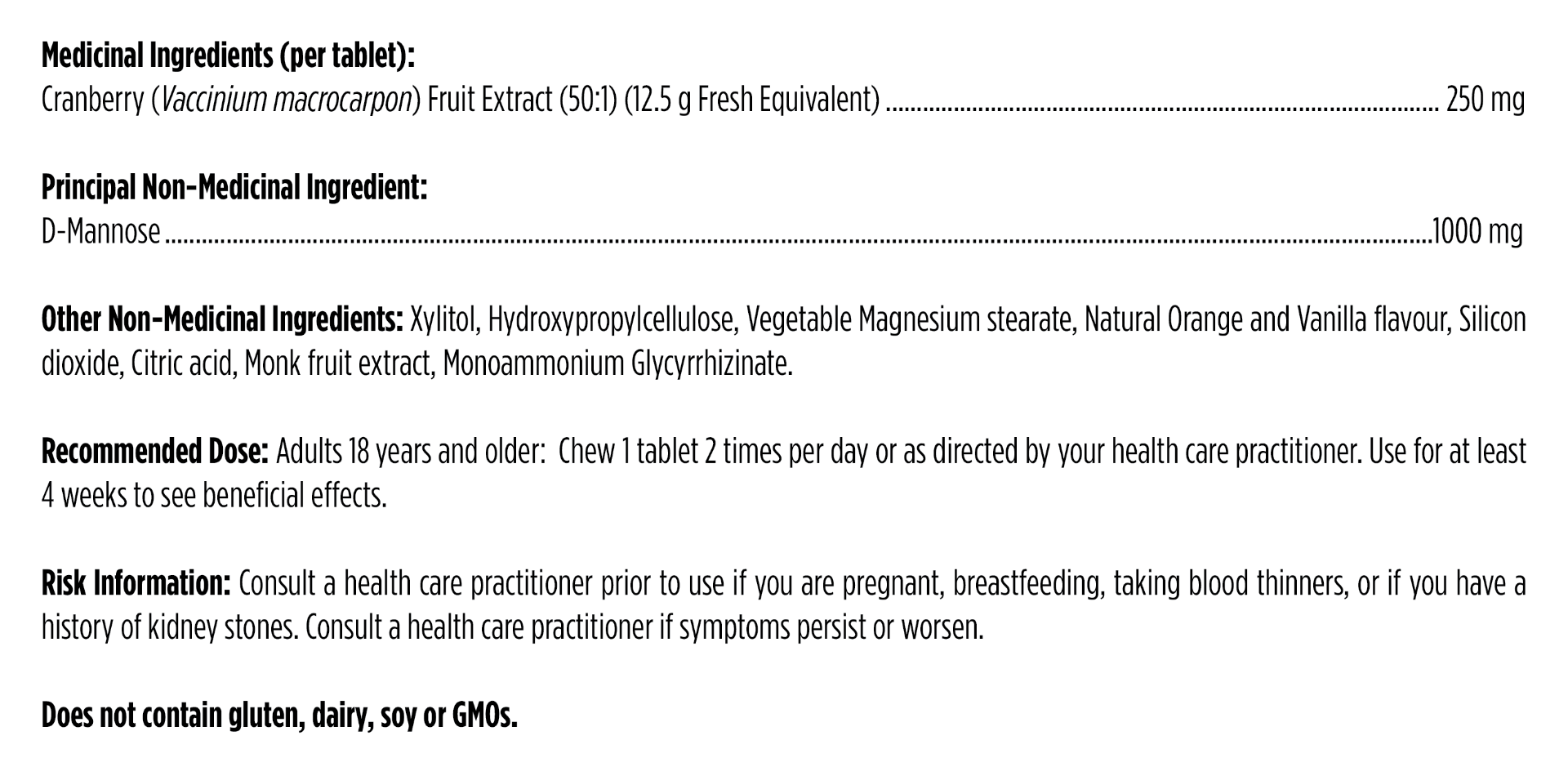 • 500 mg of cranberry (Vaccinium macrocarpon) (fruit) per 2-tablet serving