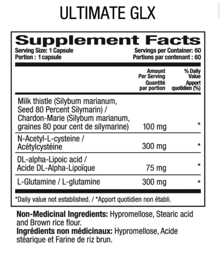 Ultimate GLX from Adeeva is a potent blend of L-Glutamine, Alpha Lipoic Acid, and N-Acetyl Cysteine, boosts glutathione for anti-aging and repair. Ultimate GLX neutralizes free radicals from exercise, recycles antioxidants, and aids neuropathy. Adeeva;s Ultimate GLX helps elevate well-being and combat oxidative stress effectively.