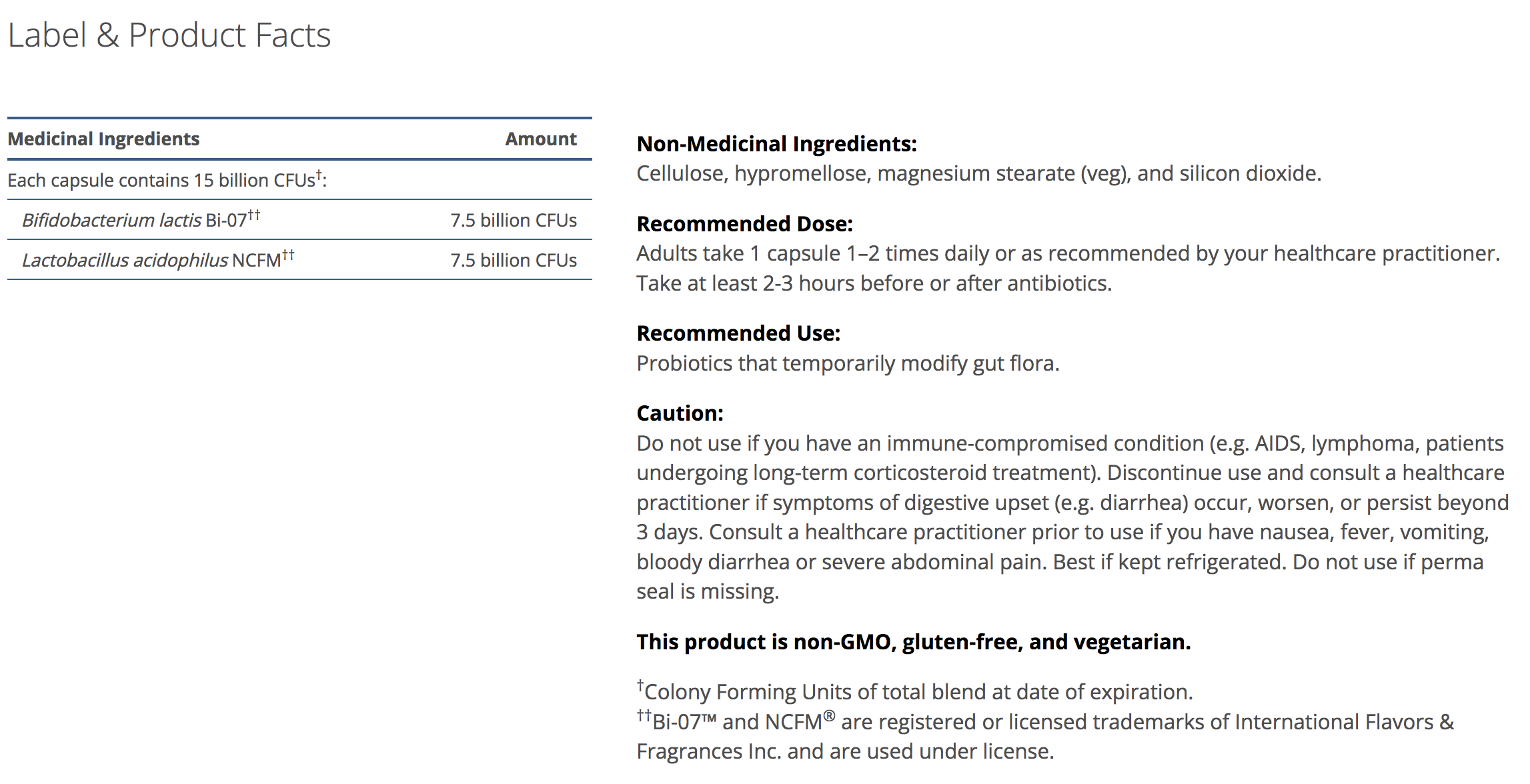 UltraFlora Balance by Metagenics provides a dairy-free base for a proprietary blend of highly viable, pure strains of L. acidophilus NCFM® and B. lactis Bi-07—“friendly” bacteria that have been shown to support a healthy intestinal environment and immune health . Backed by the Metagenics ID Guarantee for purity, clinical reliability, and predicted safety via scientific identification of strains with established health benefits.