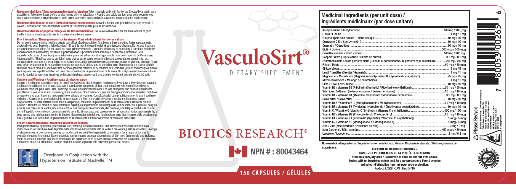 VasculoSirt from Biotics Research is a  state of the art product, providing comprehensive support for healthy cardiovascular function.